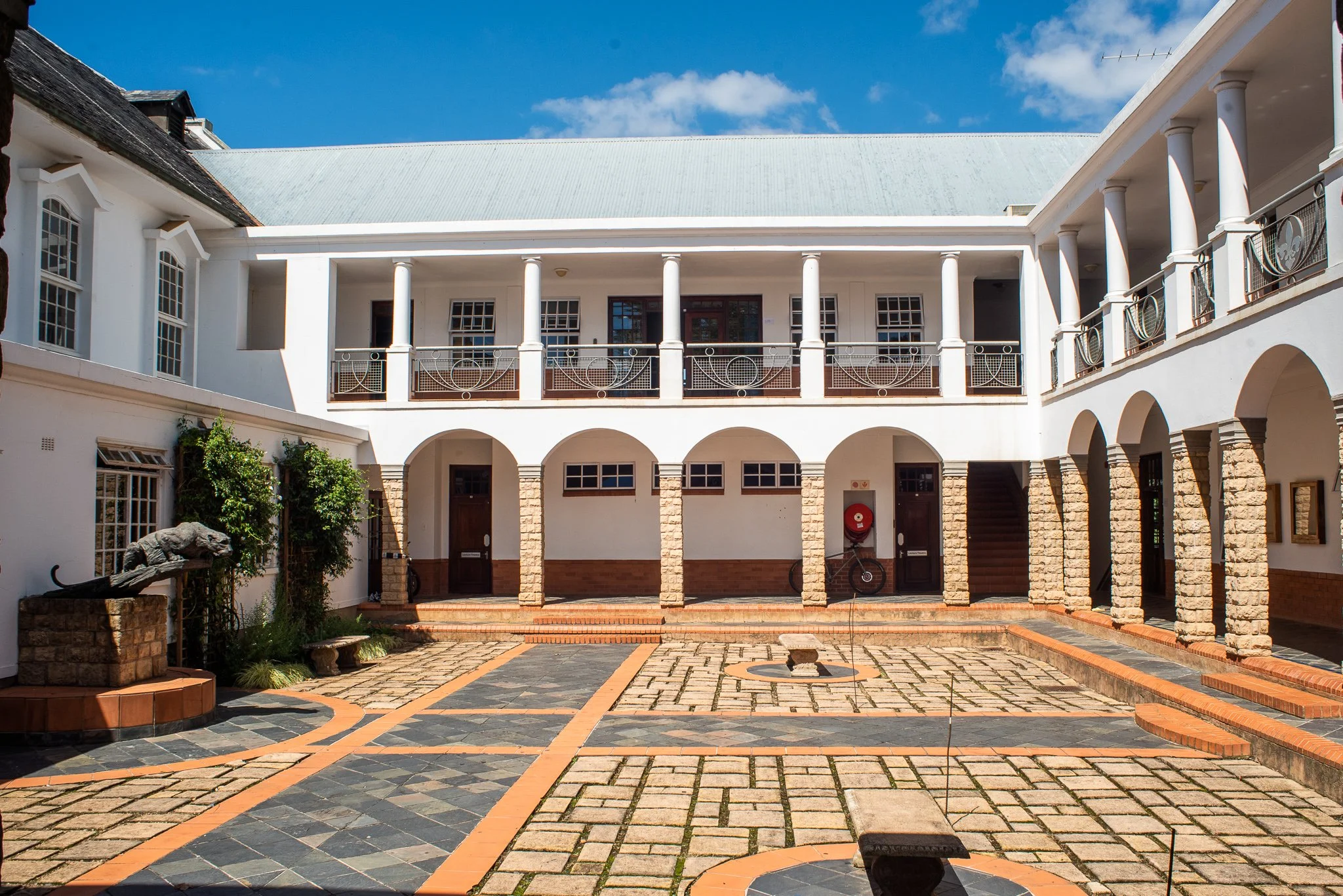 The KZN Art Fair is sited in Memorial Hall at Hilton College, with booths constructed in the main hall and large classrooms flanking a courtyard cafe, and a lecture theatre for the talks programme.